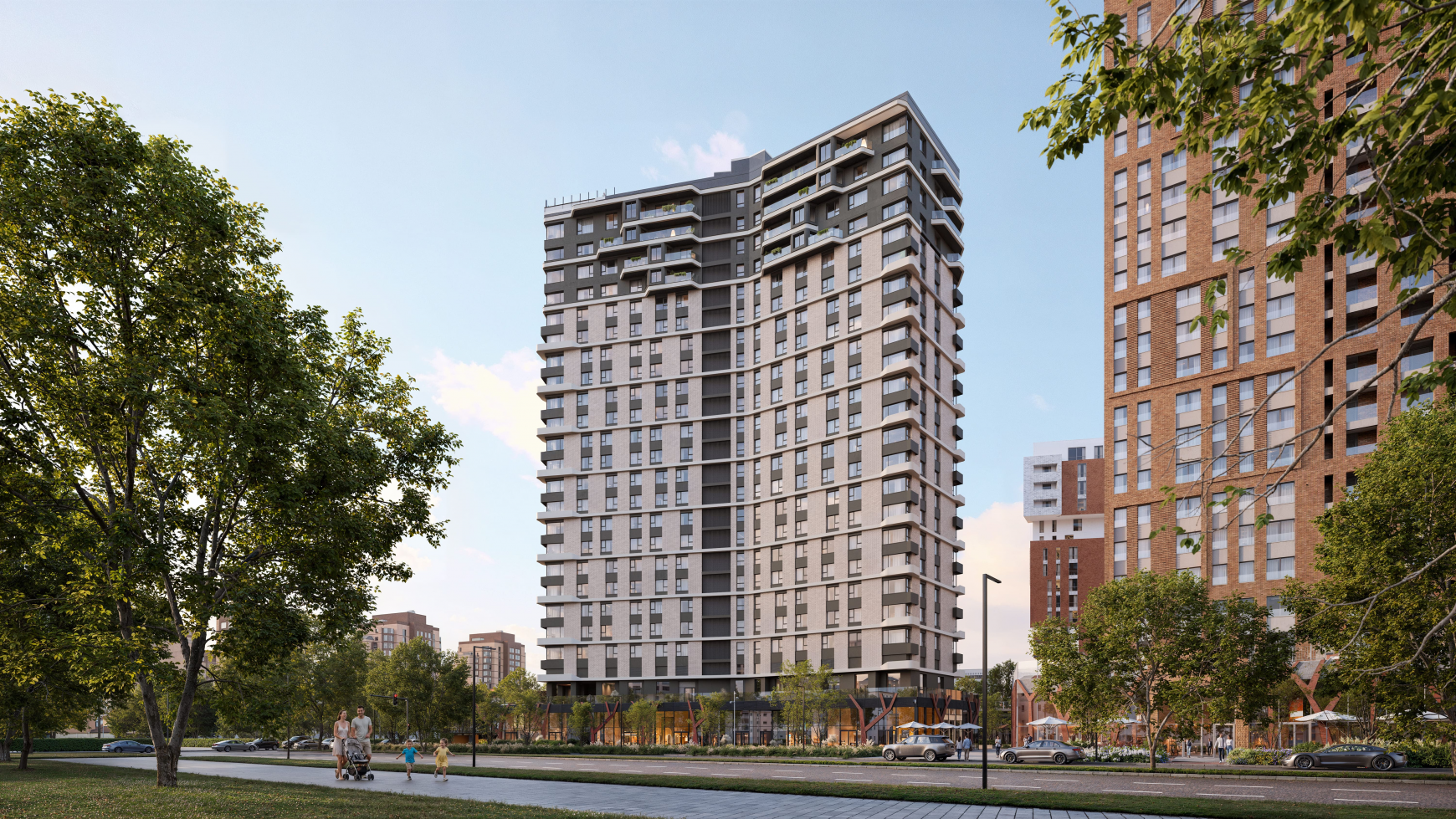 На первом этаже дома будут располагаться коммерческие помещения. Вдоль первых домов квартала уже создан новый городской бульвар с модными бутиками, кафе и ресторанами.