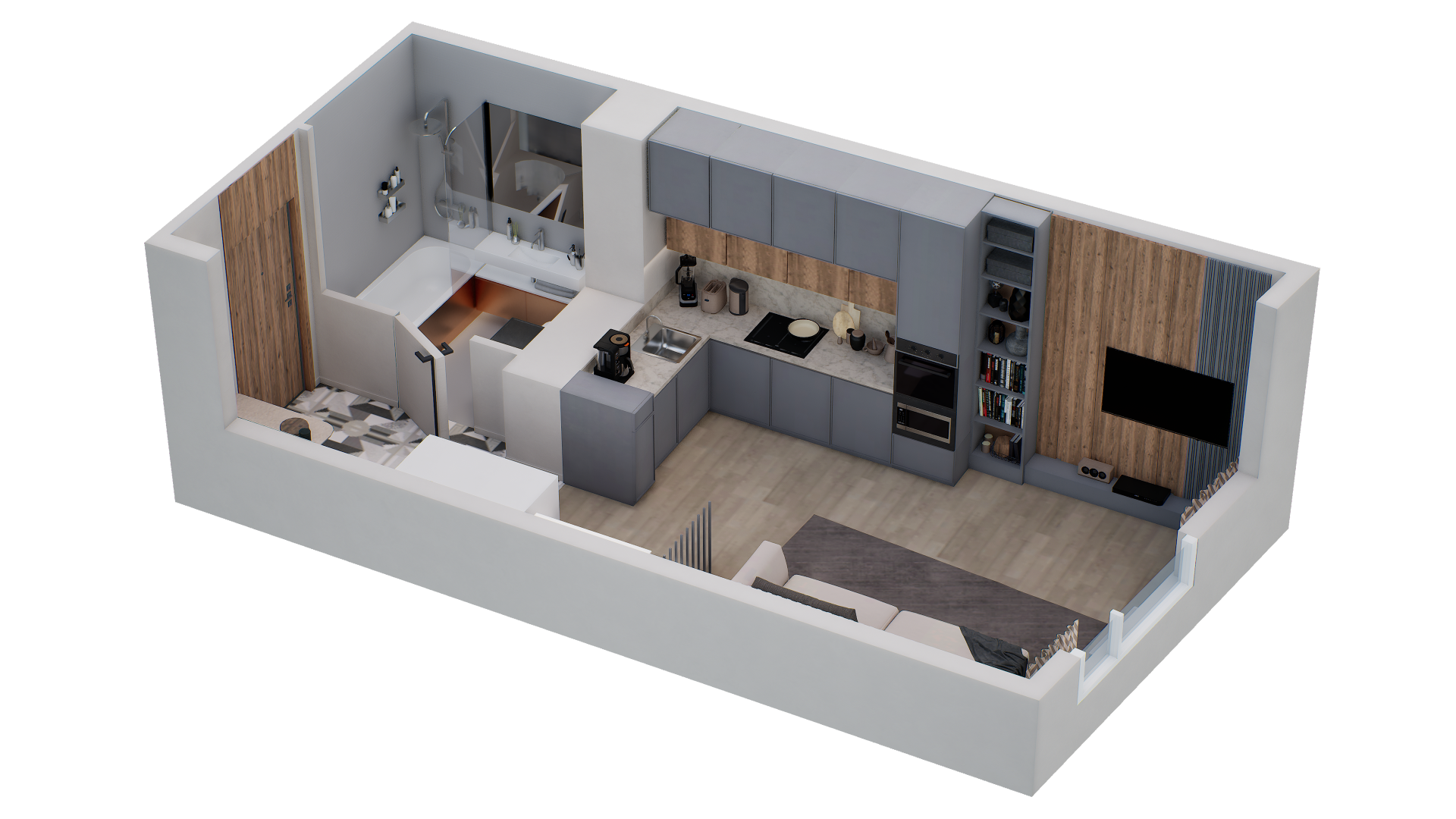 В доме 207 квартир и 50 типов планировок от студий 26 кв.м. до 4-комнатных квартир 150 кв.м. Представлены разнообразные планировочные решения: двухуровневые квартиры, планировки с террасами на последних этажах, мастер-спальнями и просторными гостиными.