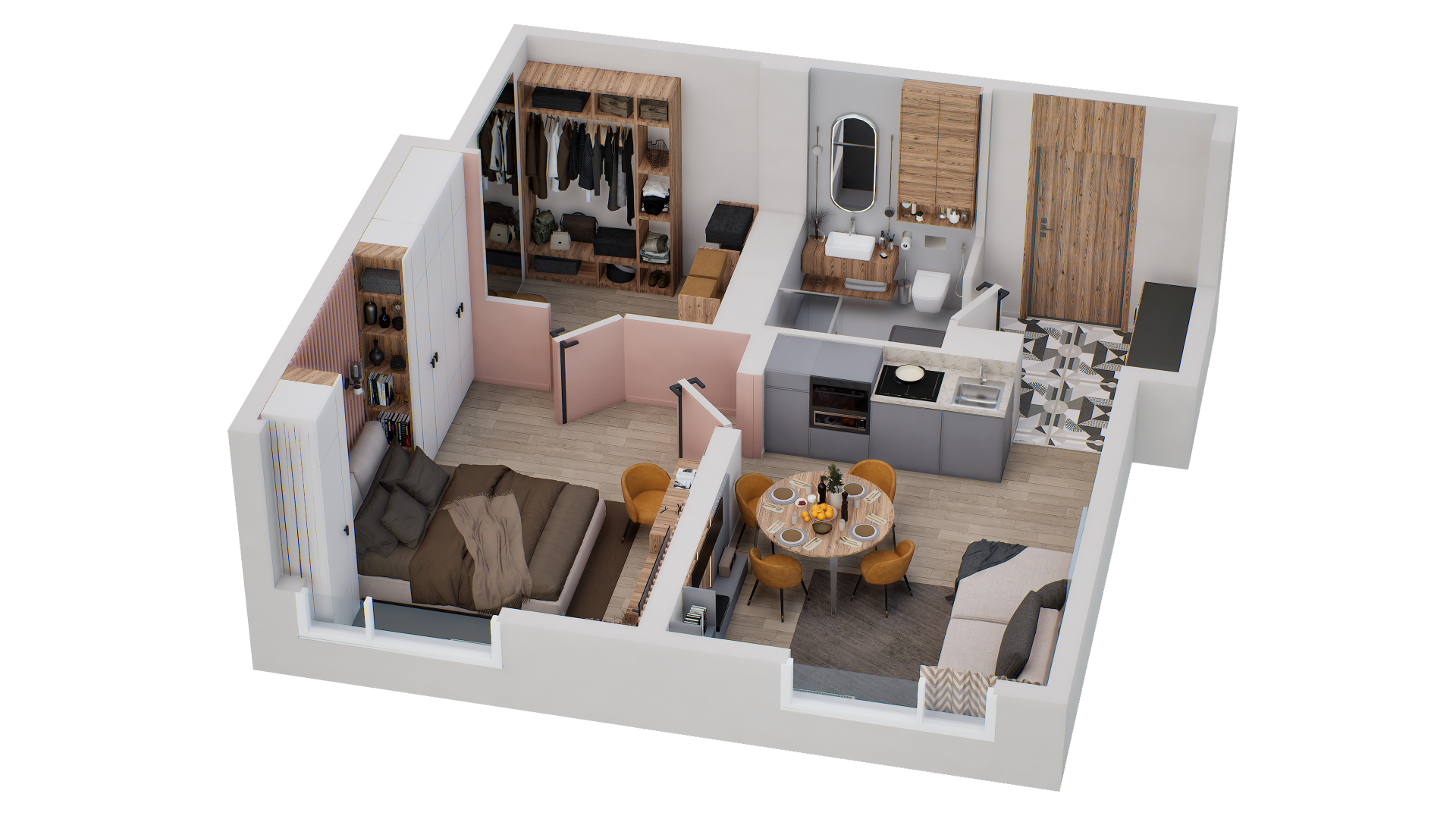 Отдельное помещение, где удобно хранить вещи и переодеваться. Гардеробная избавляет от необходимости перегружать комнаты шкафами