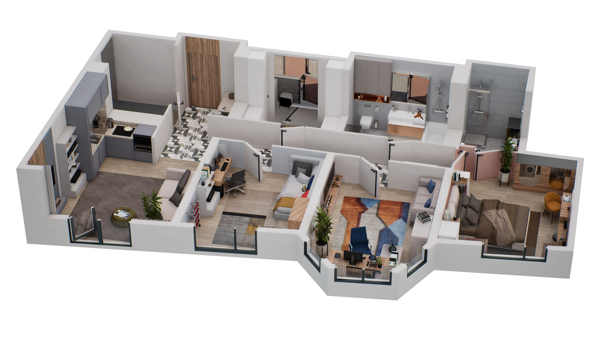 Закрытый парящий двор на уровне 2-го этажа обеспечивает дополнительную приватность в центре города, здесь вы ощутите тишину и спокойствие, не покидая оживленного района. Дом подарит жителям кинематографические виды на панораму Тюмени – в проекте предусмотрена самая высокая смотровая площадка в АК Машаров на высоте 24-го этажа.