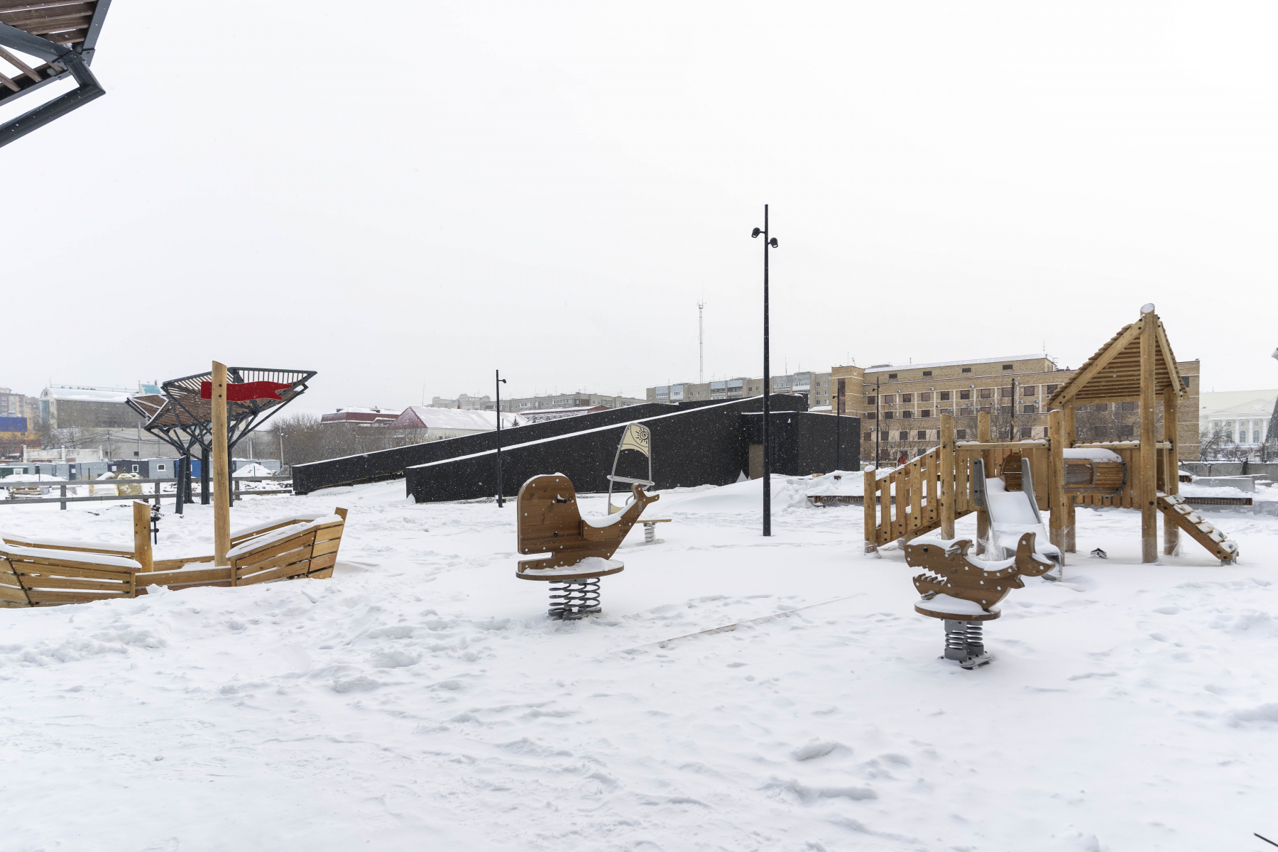 Кроме общего прогулочного пространства предусмотрены необычные архитектурные решения для зон отдыха. На высоте 2-го этажа оборудован закрытый «парящий» двор с доступом только для жителей 1-го и 2-го домов.