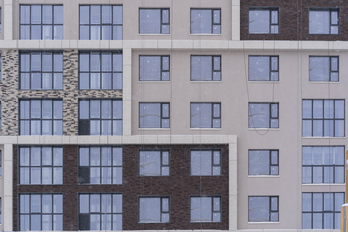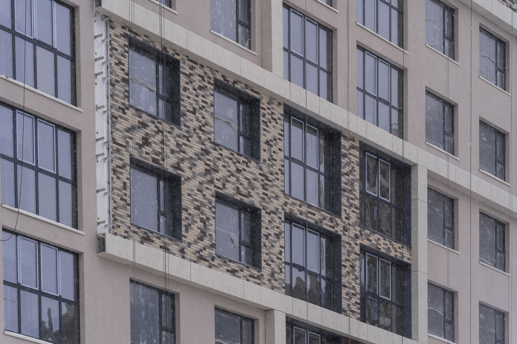 14 фотоВ доме по адресу ул. Н. Машарова, д. 2 ведутся работы по монтажу витражных конструкций, остеклению, утеплению фасадов. Выполнено 55% от общего объема.