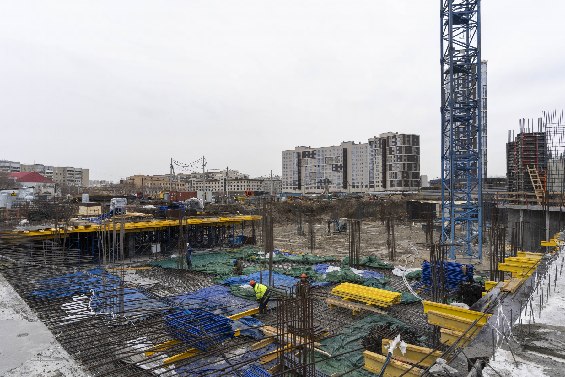 12 фотоВ январе продолжается строительство дома по ул. Н. Машарова, 6. Завершены работы по устройству фундамента, ведётся возведение монолитного каркаса здания.