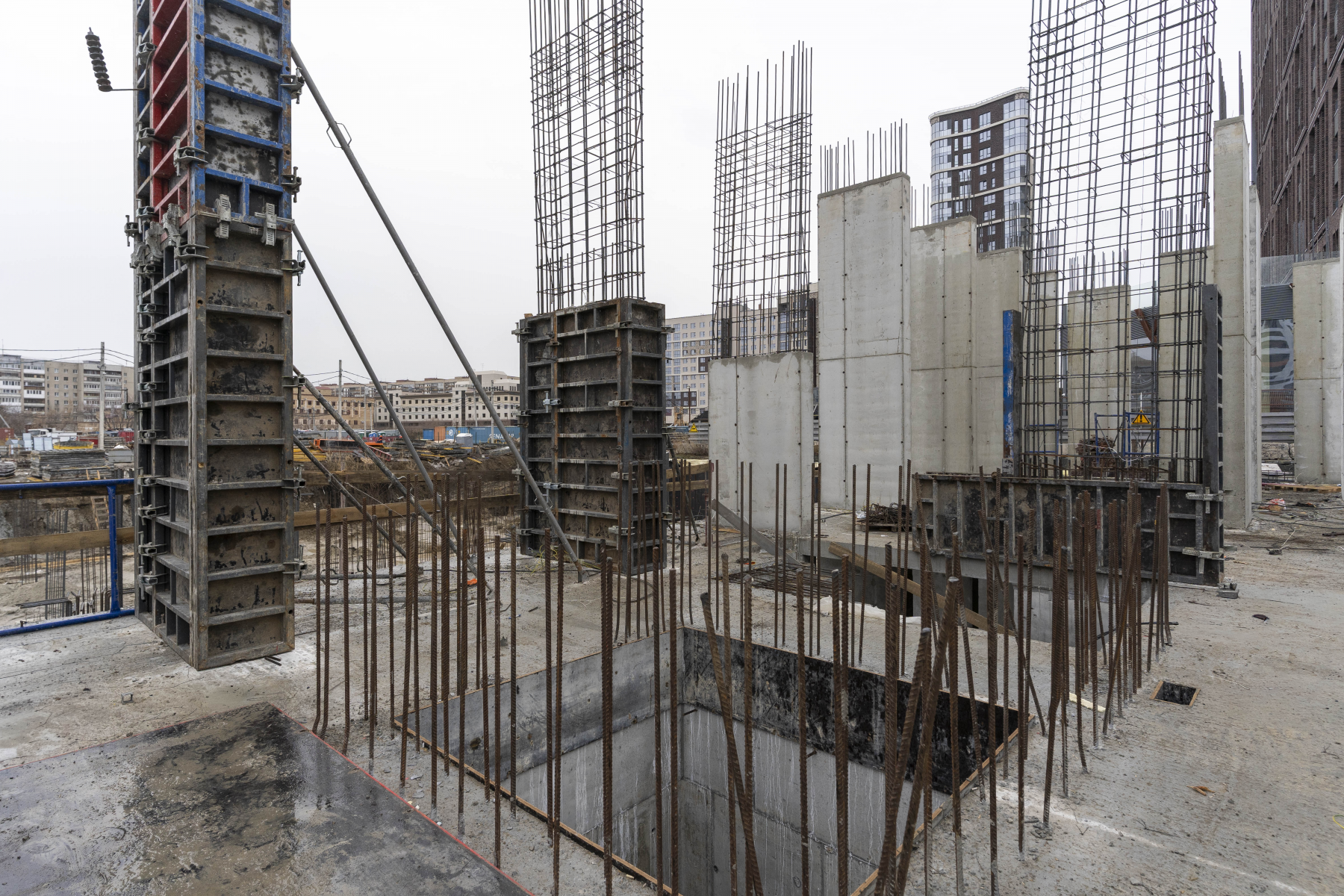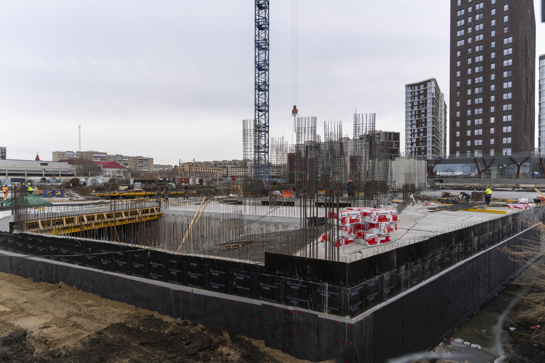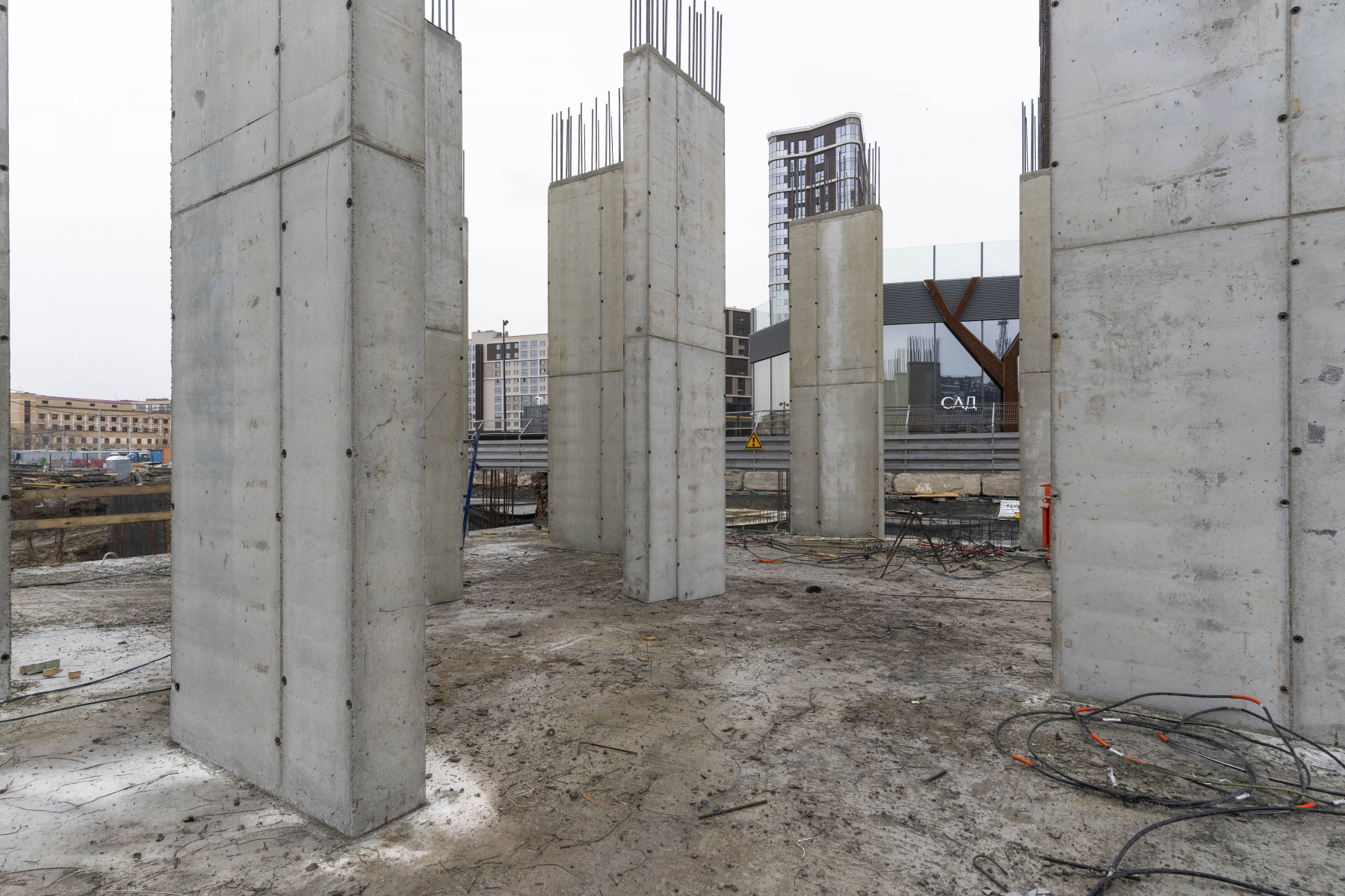 15 фотоВ феврале продолжаются монолитные работы на объекте. Завершена заливка фундаментной плиты, высокая степень готовности по ростверкам и стенам, ведётся устройство конструкций паркинга и возведение железобетонного каркаса здания.